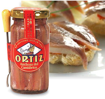 Here's a tidbit from the Atlantic Magazine's Food Channel, which has a lot of fascinating foodie articles that you wouldn't expect to see. It's by Ari Weinzweig, who urges the anchovy-wary reader to give those little fishes a second chance. I've loved anchovies for years, so he's preaching to the choir with me. But for most of you who are "anchoviphobes," you've probably been eating crappy ones that don't come from the Mediterranean. The best ones are, it seems, caught by Ortiz of Spain. A bottle like the one above costs $17! Hmmm, maybe I have to stick with the crappy ones?
