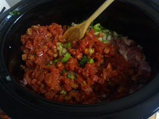 Mix your meat, chiles and vegetables together in a crock pot.